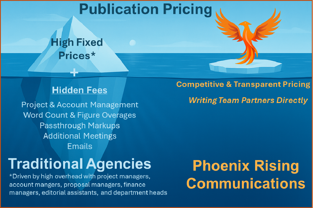 At Phoenix Rising Communications, we translate complex data into compelling stories that drive understanding and impact. We believe every dataset has a story to tell of patient experiences, of therapeutic potential, and of trailblazing a better tomorrow. Our doctorate-level writers partner directly with your teams to provide seamless, in-house support across publications, evidence synthesis, patient engagement, and medical affairs communications—grounded in transparency, collaboration, and scientific rigor.